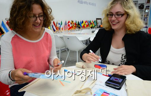 [아시아경제 백소아 기자] 제568돌 한글날을 하루 앞둔 8일 서울 용산구 숙명여대 글로벌 라운지에서 열린 '외국인 학생, 한글 티셔츠 및 에코백 만들기 체험'에서 외국인 학생들이 자신의 이름과 생일을 한글로 적고 있다.백소아 기자 sharp2046@asiae.co.kr<ⓒ세계를 보는 창 경제를 보는 눈, 아시아경제(www.asiae.co.kr) 무단전재 배포금지>