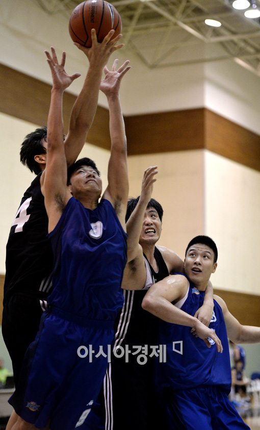 [수원=아시아경제 김현민 기자] 프로농구 부산 KT 김승원, 우승연이 8일 경기도 수원시 KT 올레빅토리움에서 열린 전주 KCC와의 연습경기에서 상대 박경상, 김일두와 리바운드를 다투고 있다. 김현민 기자 kimhyun81@asiae.co.kr<ⓒ세계를 보는 창 경제를 보는 눈, 아시아경제(www.asiae.co.kr) 무단전재 배포금지>