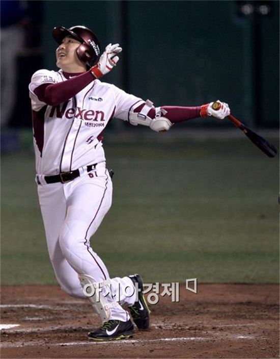 [아시아경제 김현민 기자] 프로야구 넥센 유한준이 8일 서울 목동구장에서 열린 삼성과의 경기, 8회말 1사 3루에서 추가 1타점 희생플라이를 치고 있다. 김현민 기자 kimhyun81@asiae.co.kr<ⓒ세계를 보는 창 경제를 보는 눈, 아시아경제(www.asiae.co.kr) 무단전재 배포금지>