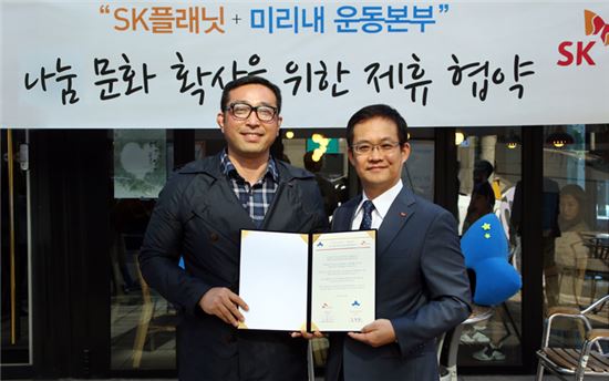 10일 SK플래닛 및 미리내 운동본부 관계자들이 나눔 문화 확산을 위한 제휴 협약을 체결했다.