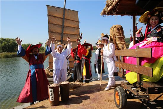 이처럼 잊혀졌던 마포나루의 영화를 다시 재현하는 행사가 ‘마포나루 새우젓 축제’다. 제7회 마포나루새우젓축제는 17일 오전 11시 월드컵공원 평화의광장 난지연못에 황포돛배 3척을 띄우고, 젓갈 상인들이 새우젓과 소금 등을 부리는 마포나루의 옛 모습을 재현하는 신명나는 마당극으로 축제의 막이 오른다. 이번 축제에는 그동안 방문객 호응도가 높았던 전통놀이 및 체험콘텐츠를 중심으로 총 45개의 프로그램이 운영된다. 축제 첫날에는 황포돛배 입항재현, 마포나루장터 개장식에 이어 팔씨름대회, 새우젓 경매체험, 외국인과 함께 하는 김장담그기 등 체험행사, 인기가수 주현미, 김수희, 이용 등이 출연하는 KBS라디오 '이무송, 임수민의 희망가요' 특집공개방송이 개막축하공연으로 진행된다. 둘째 날에는 올해 처음으로 신설된 달빛과 함께 하는 수변무대 국악공연, 전국 최고의 트로트가수왕을 뽑는 마포나루 가수왕선발대회를 비롯해 전통줄타기 공연, 지역예술인·청소년 문화공연 등이 펼쳐진다. 마지막 날인 19일에는 전통씨름대회, 마포구민의 날 기념식 및 남진, 문희옥, 임주리 등이 출연하는 마포구민의날 기념 특별공연이 펼쳐지며 가을밤을 아름답게 수놓을 불꽃쇼가 대미를 장식한다.상설프로그램으로는 마루터·황포돛배 포토존, 옛날동헌체험, 마포고을사또, 마포학당, 옛날 생활문화체험, 새우젓만들기 체험, 새우잡기, 보트타기 등 23개 프로그램이 운영된다. ◆전국 5개 산지 15개 단체의 새우젓장터 비롯 지역특산물장터, 먹거리장터 열려 축제기간인 17~19일 평화광장에는 강화 소래 강경 광천 신안 등 옛날 마포나루에 젓갈을 대던 5개 산지의 15개 단체가 참여해 새우젓 및 젓갈류 판매장을 연다. 김장철 필수품목인 전국 대표 새우젓을 산지 가격으로 구입할 수 있어 김장을 앞둔 알뜰주부라면 꼭 한번 들러볼만 하다. 배추 등 김장용 채소와 함께 김장비용을 결정하는 주요 품목인 젓갈류. 올해 새우젓의 가격은 예년 수준과 비슷하지만 새우젓 가운데 최고로 치는 육젓의 가격은 조금 높아졌다. 강경의 젓갈상인 송승호 씨는“육젓은 음력 6월에 나는 새우로 만드는데 지난 여름 해파리 출몰로 어획을 포기하는 바람에 어획량이 많지 않다.”고 말했다. 이번 축제에서는 참여업체별로 가격차가 있지만 대체로 육젓은 상품의 질에 따라 kg당 2만~4만원 선에서, 김장용 새우젓으로 쓰이는 추젓은 5000~1만원에서 거래될 것이다. 올해는 처음으로 판매장터운영위원회가 구성 운영돼, 젓갈의 품질관리는 물론 고객친절도, 청결상태, 가격 등 15개 항목의 운영기준에 의거, 꼼꼼한 점검과 평가를 실시한다. 올해 운영기준을 준수하지 않은 업체는 내년에 참여기회가 제한된다.포스터
