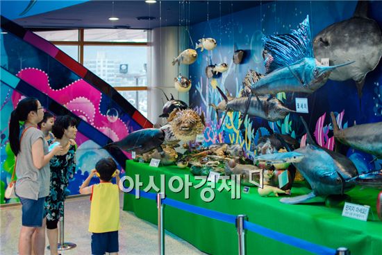 "오는 12월11일 까지, 어패류 전시와 함께 체험행사 진행"[아시아경제 노해섭 기자]해남군(군수 박철환)이 해남공룡박물관과 땅끝조각공원내 ‘ㄱ’ 갤러리에서 ‘해양생물 기획전시회’를 개최한다.해남 대표 해양박물관인 땅끝해양자연사박물관과 연계해 기획한 이번 전시회는 어패류 전시와 함께 체험행사가 진행된다.우선 해남공룡박물관에서는 오는 12월7일까지 5m 크기의 거대한 백상아리를 비롯하여 어패류, 산호류, 포유류 등 해양생물 1,900여점을 만날 수 있다.‘공룡과 바다생물과의 만남’이란 주제로 개최, 다양한 해양생물과 체험형 전시물을 통해 공룡박물관을 방문하는 관람객에게 새로운 해양신비의 세계를 만끽할 수 있는 기회가 될 것으로 기대된다.전시회 관람은 평일 오전 9시부터 오후 6시까지 관람이 가능하며 매주 월요일은 정기휴관일이다.이와 함께 ‘ㄱ’갤러리에서는 오는 12월11일까지 바다생물 주제로 탁본을 직접 체험할 수 있는 상설체험이 진행된다. 체험시간은 10시부터 16시까지다. 주말에는 10시부터 12시까지 2시간동안 직접 패류와 티셔츠 등을 활용해 작품을 만들어 볼 수 있는 특별체험전으로 운영된다. 특별체험전은 소정의 참가비(2,000원)가 있고 1회당 50명으로 총 16회가 진행된다. 만들어진 작품 중 우수 작품은 ‘ㄱ’갤러리에 체험전 기간 동안 전시하고 전시가 끝나면 본인에게 전달한다.군 관계자는 “해양생물을 만날 수 있는 특별한 기회가 해남에서 펼쳐진다”며 “가족과 함께 즐거운 추억을 쌓을 수 있는 만큼 많은 관심을 바란다”고 당부했다.한편 공룡화석지는 1998년 10월 17일 천연기념물 394호로 지정되었으며 2007년 4월 27일 개관하여 2014년 9월말현재 168만명(매년 20만명)이 찾아와 전국 유명관광명소로 자리 잡아가고 있다. 땅끝조각공원은 지난 2003년 개관, 39,000㎡의 부지에 26점의 조각작품이 야외에 전시되어 있고 378㎡의 전시관 1동과 화장실을 갖추고 있다.노해섭 기자 nogary@<ⓒ세계를 보는 창 경제를 보는 눈, 아시아경제(www.asiae.co.kr) 무단전재 배포금지>