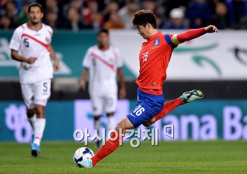 [아시아경제 김현민 기자] 슈틸리케 감독이 이끄는 축구 국가대표팀이 14일 서울월드컵경기장에서 북중미의 강호 코스타리카와 평가전을 가졌다. 기성용이 중거리슛을 시도하고 있다. 김현민 기자 kimhyun81@asiae.co.kr<ⓒ세계를 보는 창 경제를 보는 눈, 아시아경제(www.asiae.co.kr) 무단전재 배포금지>