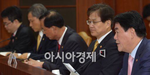 [아시아경제 최우창 기자] 최경환 경제부총리 겸 기획재정부 장관이 15일 오전 서울 세종로 정부서울청사에서 열린 경제관계장관회의에 참석, 모두발언을 하고 있다.최우창 기자 smicer@asiae.co.kr<ⓒ세계를 보는 창 경제를 보는 눈, 아시아경제(www.asiae.co.kr) 무단전재 배포금지>