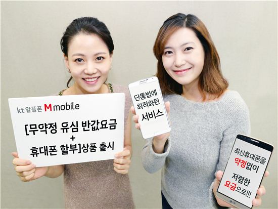 [아시아경제 권용민 기자] KT의 알뜰폰 M모바일이 단말기유통구조개선법(단통법)에 최적화된 통신서비스 상품을 선보였다. 저렴한 요금제를 쓰기 원하는 고객에게 최신 휴대폰을 24개월 할부로 살수 있는 기회를 제공한다는 것이 특징이다. 케이티스(KTIS)는 M모바일 '무약정 유심 반값요금+휴대폰 할부' 상품을 출시했다고 15일 밝혔다. 상품의 가장 큰 특징은 나에게 맞는 저렴한 알뜰폰 유심 요금제를 쓰면서 약정 없이 최신 휴대폰을 사용할 수 있다는 것이다.예를 들어 소비자가 반값 저렴한 LTE 유심(USIM) 31요금제에 가입해 LG전자 G3비트를 24개월 할부로 구매할 경우 서비스 이용 요금과 휴대폰 할부금으로 매월 4만600원을, 2년 기준으로 총 97만4600원을 납부하게 된다. 동일한 휴대폰을 타사에서 지원금을 받고 구매한 것과 비교해 약 14~17% 저렴하다는게 KTIS측의 설명이다.요금제를 하향 조정하거나 다른 통신사로 이동할 경우 위약금 부담도 없다. 지원금을 받게 되면 해지·요금제 변경시 위약금이 청구되지만 '무약정 유심 반값요금+휴대폰 할부' 상품은 구입할 때부터 약정기간이 없고 휴대폰 지원금을 받지 않기 때문이다.구입 가능한 휴대폰 단말기는 삼성전자 갤럭시S5-LTE A·갤럭시노트3·갤럭시노트3 네오·갤럭시S4·갤럭시 알파와 LG전자 G3비트·와인 스마트·G3캣6 등 총 8종이다.반값 유심 요금제 신청 및 휴대폰 구입은 M모바일 홈페이지(www.ktism.com)에서 온라인으로 가능하다. 관련 문의는 고객센터(1899-5000)로 하면 된다. 권용민 기자 festym@asiae.co.kr<ⓒ세계를 보는 창 경제를 보는 눈, 아시아경제(www.asiae.co.kr) 무단전재 배포금지>