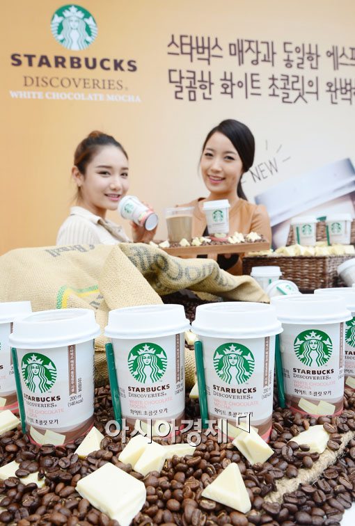 [아시아경제 백소아 기자] 15일 서울 종로구 일민미술관 앞에서 모델들이 '스타벅스 디스커버리즈 화이트 초콜릿 모카'를 선보이고 있다. 스타벅스 커피 컴퍼니와 동서식품이 출시한 '스타벅스 디스커버리즈 화이트 초콜릿 모카'는 스타벅스 매장에서 사용하는 것과 동일한 고급 에스프레소 원두 추출액으로 만들어진 제품이다.백소아 기자 sharp2046@asiae.co.kr<ⓒ세계를 보는 창 경제를 보는 눈, 아시아경제(www.asiae.co.kr) 무단전재 배포금지>