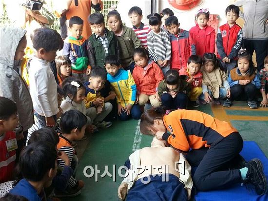"구례 119안전센터에서 소화기 사용법, 심폐소생술 등 배워"[아시아경제 이진택 기자]구례군 드림스타트는 지난 15일 어린이집에 다니는 6~7세 아동을 대상으로 화재 및 각종 안전사고 발생 시 대피요령과 기본 응급처치에 대한 교육을 실시했다.구례119안전센터를 방문해 진행된 이날 교육에서는 위험발생 시 대피요령에 대해 알기 쉽게 설명하고, 아이들이 소화기 사용법과 심폐소생술 하는 법 등을 직접 실습하며 만약의 사고에 대처할 수 있는 능력을 키우는 시간을 가졌다. 군 드림스타트 관계자는 “현장 실습을 통한 이번 교육에 아이들의 호응과 집중도가 매우 높았다”면서 “앞으로도 아이들의 눈높이에 맞는 안전 교육을 지속적으로 실시해 우리지역 아이들이 안전사고의 위험에 노출되지 않고 밝고 건강하게 자랄 수 있도록 최선을 다하겠다”고 했다.이진택 기자 <ⓒ세계를 보는 창 경제를 보는 눈, 아시아경제(www.asiae.co.kr) 무단전재 배포금지>