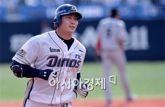 [창원=아시아경제 나석윤 기자] 프로야구 NC의 외야수 나성범(25)이 추격의 홈런포를 쏘아올렸다. 팀의 창단 첫 포스트시즌 홈런이다.나성범은 19일 마산구장에서 열린 2014 한국야쿠르트 세븐 프로야구 LG와의 준플레이오프 1차전에 5번 타자겸 우익수로 선발 출장, 팀이 0-6으로 뒤진 2회초 1사 뒤 첫 번째 타석에서 왼쪽 담장을 넘어가는 솔로홈런을 쳤다. 볼카운트 1B-0S에서 LG 선발 류제국(31)의 2구째를 놓치지 않고 밀어쳤다. 비거리는 105m.이 홈런으로 한 점을 따라붙은 NC는 2회초가 진행 중인 현재 1-6으로 점수차를 좁혔다.나석윤 기자 seokyun1986@asiae.co.kr<ⓒ세계를 보는 창 경제를 보는 눈, 아시아경제(www.asiae.co.kr) 무단전재 배포금지>