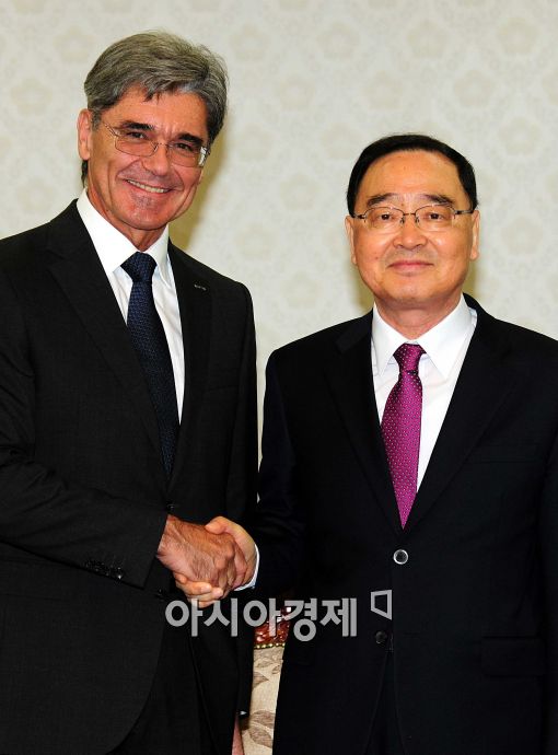 [아시아경제 최우창 기자] 정홍원 국무총리가 20일 서울 세종로 정부서울청사에서 조 케져 지멘스 그룹 회장과 악수하고 있다.최우창 기자 smicer@asiae.co.kr<ⓒ세계를 보는 창 경제를 보는 눈, 아시아경제(www.asiae.co.kr) 무단전재 배포금지>