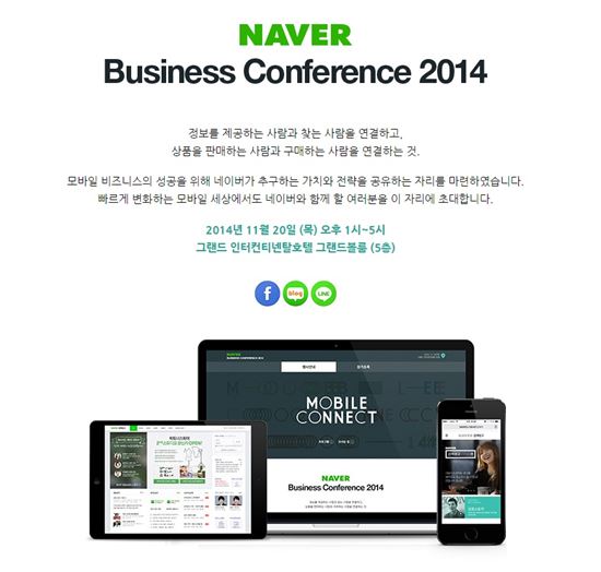 네이버는 다음달 20일 '네이버 비즈니스 컨퍼런스 2014'를 개최한다.