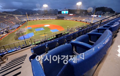 [창원=아시아경제 김현민 기자] 21일 프로야구 LG 트윈스와 NC 다이노스의 준플레이오프 2차전이 열릴 마산야구장에 비가 내리고 있다. 이날 경기는 우천으로 순연됐다.김현민 기자 kimhyun81@asiae.co.kr<ⓒ세계를 보는 창 경제를 보는 눈, 아시아경제(www.asiae.co.kr) 무단전재 배포금지>