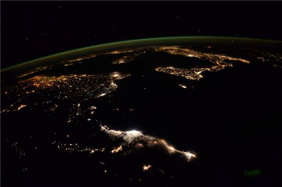 ▲국제우주정거장에서 내려다 보이는 북아프리카와 유럽의 밤.[사진제공=NASA/리드 와이즈먼]
