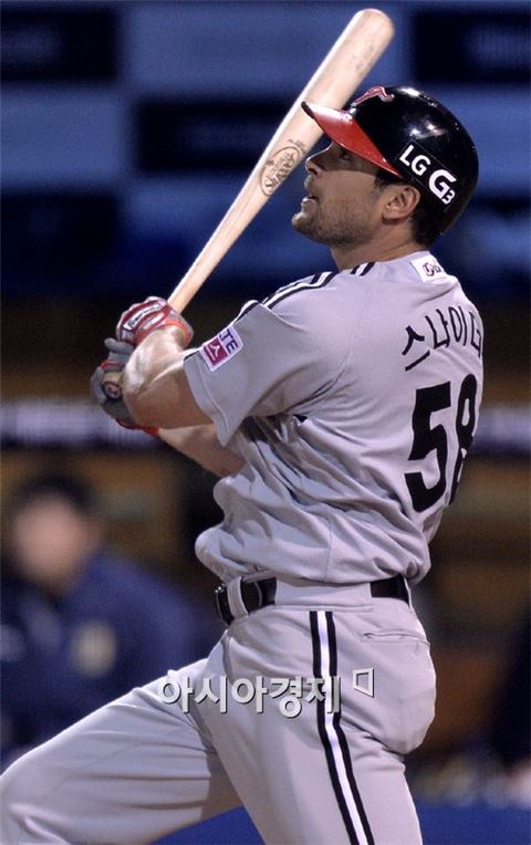 [창원=아시아경제 김현민 기자] 프로야구 LG 트윈스와 NC 다이노스의 준플레이오프 2차전이 22일 마산야구장에서 열렸다. 4회초 1사 1루에서 LG 스나이더가 NC 선발 에릭을 상대로 추가 투런 홈런을 치고 있다. 김현민 기자 kimhyun81@asiae.co.kr<ⓒ세계를 보는 창 경제를 보는 눈, 아시아경제(www.asiae.co.kr) 무단전재 배포금지>