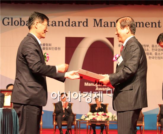 [아시아경제 이창환 기자] 일동제약이 23일 서울 홍은동 그랜드힐튼호텔에서 열린 2014 글로벌스탠다드경영대상 시상식에서 품질경영대상을 수상했다.일동제약은 제조설비 확충, 철저한 품질관리(QC)와 품질보증(QA) 등 생산 부문은 물론, 연구, 개발, 마케팅 등 전사적 차원의 우수한 품질관리 체계를 인정받았다.2010년 분리독립형 세파계항생제 및 세포독성항암제공장을 준공했으며 지난해 대대적인 안성공장 리모델링을 통해 GMP(Good Manufacturing Practice) 기준을 강화해 제품의 품질과 안전성을 더욱 높였다.또한 지속적인 R&D를 통해 PDF저해 기전의 수퍼항생제, 천연물 유래 치매치료제, 표적지향 항암제 등 유망한 신약을 개발 중이며 유산균, 히알루론산과 같은 바이오원료 분야에서도 특허 기술을 확보하는 등 괄목할 성과를 거두고 있다.한편 글로벌스탠다드경영대상은 한국능률협회가 주최 주관해 각 산업 분야에서 국제표준 달성 및 글로벌 경쟁력 제고를 통해 경영 성과가 탁월한 기업을 선정하는 제도로, 올해 13회째를 맞았다.이창환 기자 goldfish@asiae.co.kr<ⓒ세계를 보는 창 경제를 보는 눈, 아시아경제(www.asiae.co.kr) 무단전재 배포금지>