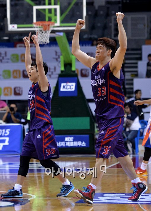 [고양=아시아경제 김현민 기자] 프로농구 고양 오리온스와 인천 전자랜드의 정규리그경기가 23일 고양체육관에서 열렸다. 오리온스 이승현과 한호빈이 81-79 승리를 확정짓고 환호하고 있다. 김현민 기자 kimhyun81@asiae.co.kr<ⓒ세계를 보는 창 경제를 보는 눈, 아시아경제(www.asiae.co.kr) 무단전재 배포금지>