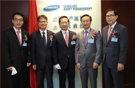 좌측부터 최성식 상해리서치센터장, 강승준상해총영사관 재경관, 윤용암 삼성자산운용 대표, 궈춘 산은만국증권 홍콩법인 대표, 최영호 중국본사 금융팀 상무.