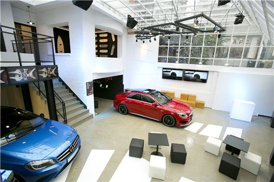 이 같은 흐름은 국내도 마찬가지다. 메르세데스-벤츠 코리아가 최근 서울 강남 세로수길에 문을 연 '메르세데스 미(me)'는 라이프스타일 체험공간을 표방하는 곳이다. 단순히 자동차를 전시하는 공간이 아니라 베이킹·바리스타커피 클래스를 열고 해가 저문 늦은 저녁에는 밴드나 DJ의 현장공연이 이어진다.벤츠의 콤팩트카 4종을 미리 예약해 타볼 수도 있다. 오는 26일까지 한시적으로 운영될 예정이지만 고객 반응에 따라 연장하거나 혹은 정례적으로 운영할 계획도 가지고 있다. 메르세데스 미는 독일 함부르크에서 올해 중순께 처음 선보인 이후 아시아에서는 이번에 한국에 처음 열었다.국내에서도 20~30대 젊은 고객을 중심으로 자동차를 단순한 이동수단이 아닌 하나의 문화, 혹은 자신의 정체성을 드러내는 매개체로 여기는 경향이 강해졌다. '점잖고 보수적인' 벤츠가 누구보다 발 빠르게 움직이고 있는 것이다.최덕준 메르세데스-벤츠 코리아 세일즈총괄 부사장은 "보다 많은 국내 고객이 벤츠의 새로운 콤팩트카와 함께 젊고 진보적인 면모를 자연스레 체험할 수 있을 것"이라고 말했다.벤츠는 2012년 국내에 B클래스를 내놓은 이후 잇따라 새 콤팩트카를 소개하고 있다. 지난해 신형 A클래스에 올해 들어서는 쿠페형인 CLA클래스, 최근에는 소형 스포츠유틸리티차량(SUV) GLA클래스까지 개발된 콤팩트카는 모두 출시했다. 내년 상반기에는 A클래스의 고성능모델인 A45 AMG와 B클래스 페이스리프트 모델까지 국내에 소개돼 선택 폭은 더 늘어날 전망이다.서울 강남 세로수길에 문을 연 '메르세데스 미(me)'.