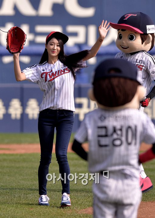 [아시아경제 김현민 기자] 프로야구 NC 다이노스와 LG 트윈스의 준플레이오프 4차전이 25일 잠실야구장에서 열렸다. 걸그룹 나인뮤지스의 경리가 시구를 하고 있다. 김현민 기자 kimhyun81@asiae.co.kr<ⓒ세계를 보는 창 경제를 보는 눈, 아시아경제(www.asiae.co.kr) 무단전재 배포금지>