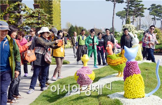 전형적인 가을 날씨가 이어진 가운데 휴일인 26일 함평국향대전이 열리고 있는 함평엑스포공원에 전국에서 수많은 관광객들이 찾아와 그윽한 국화향기를 맡으면서 깊어가는 가을을 만끽했다. <br /> <br /> <br /> ‘국화향기 그윽한 풍요로운 함평천지!’를 주제로 열리는 이번 국향대전은 오는 11월9일까지 관광객 동선 주요 길목에 대형 국화작품과 기획 작품을 배치한 야외 전시, 수준 높은 국화 분재 작품을 관람할 수 있다.