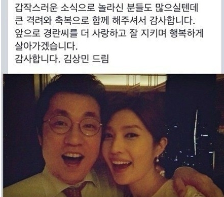 김경란 김상민 결혼 [사진=김상민 의원 SNS 캡처]