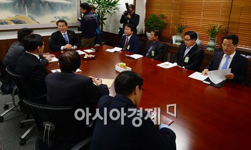[아시아경제 백소아 기자] 류길재 통일부 장관이 27일 서울 세종로 정부서울청사 통일부 접견실에서 개성공단기업협회 회장단과 면담을 하고 있다.백소아 기자 sharp2046@asiae.co.kr<ⓒ세계를 보는 창 경제를 보는 눈, 아시아경제(www.asiae.co.kr) 무단전재 배포금지>