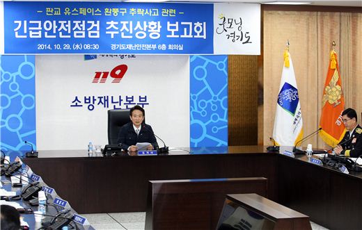 남경필 경기지사가 29일 수원 권선구 경기도재난안전본부에서 31개 시군 부단체장이 참석한 가운데 긴급안전점검 추진상황 보고회를 개최하고 있다.