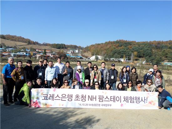 [아시아경제 조은임 기자] NH농협은행은 28일 경기 연천 나룻배 마을에서 외국계 은행 서울지점과 사무소 임직원 40여명을 초청해 농촌체험 행사를 실시했다고 29일 밝혔다. 이번 행사에는 농협은행과 외환송금서비스, 크레딧라인 제공 등 업무협력 관계를 유지하고 있는 국내 소재 30여개 외국계 은행 임직원들이 참가했다. 체험활동은 도토리묵 만들기, 배 따기, 민통선 트랙터 투어 등으로 진행되었다. 조은임 기자 goodnim@asiae.co.kr<ⓒ세계를 보는 창 경제를 보는 눈, 아시아경제(www.asiae.co.kr) 무단전재 배포금지>