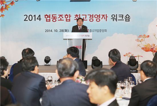 [아시아경제 이지은 기자]김기문 중소기업중앙회장이 28일 대전에서 열린 최고경영자 워크숍에서 인사말을 하고 있다. 중기중앙회는 이날 대전 리베라유성호텔에서 2014년 지방·사업조합 최고경영자 워크숍을 개최했다고 29일 밝혔다.이지은 기자 leezn@asiae.co.kr<ⓒ세계를 보는 창 경제를 보는 눈, 아시아경제(www.asiae.co.kr) 무단전재 배포금지>