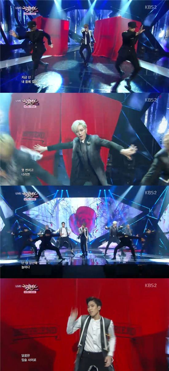 [아시아경제 장용준 기자]그룹 보이프렌드가 박력있는 무대로 여성 팬들의 마음을 흔들었다.보이프렌드 31일 오후 방송한 KBS2 '뮤직뱅크'에서 세 번째 미니앨범 타이틀곡인 '위치'로 화려한 노래와 춤을 선보였다.이날 보이프렌드는 레드벨벳 장막을 이용한 '장막춤'으로 세련된 무대를 꾸몄다. 특히 짙은 스모키 메이크업이 카리스마 있는 분위기를 연출했다. 보이프렌드의 '위치'는 잔혹동화 '빨간 두건'을 모티브로 늑대소년이 된 멤버들의 캐릭터를 그대로 그려냈다. 프로듀싱팀 스윗튠의 스케일이 느껴지는 웅장하고 리드미컬한 멜로디가 인상적이다.한편 이날 '뮤직뱅크'에는 비스트, 2AM, 빅스, 보이프렌드, 매드타운, 레드벨벳, 송지은, 대국남아, 방탄소년단, 홍진영, 주니엘, HOTSHOT, A.CIAN, 퍼펄즈, 레이나, 나윤권, 라붐 등이 출연했다.장용준 기자 zelra@asiae.co.kr<ⓒ세계를 보는 창 경제를 보는 눈, 아시아경제(www.asiae.co.kr) 무단전재 배포금지>