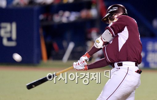 [아시아경제 김현민 사진기자] 프로야구 넥센 히어로즈와 LG 트윈스의 플레이오프 4차전이 31일 서울 잠실구장에서 열렸다. 7회초 1사 1루에서 넥센 강정호가 LG 우규민을 상대로 추가 좌월 투런 홈런을 치고 있다. 김현민 사진기자 kimhyun81@asiae.co.kr<ⓒ세계를 보는 창 경제를 보는 눈, 아시아경제(www.asiae.co.kr) 무단전재 배포금지>