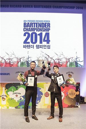 제4회 페르노리카 코리아 바텐더 챔피언십 2014 우승자 이진록(왼쪽), 권경욱.