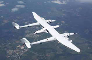 버진 갤럭틱의 우주선 모선 '화이트나이트2'와 발사체 '런처원'. 사진= 버진갤럭틱