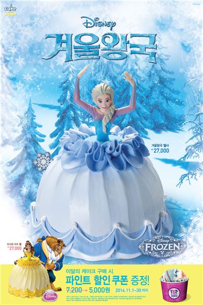 배스킨라빈스가 11월 이달의 케이크로 겨울왕국 엘사 등 캐릭터 케이크를 출시했다.