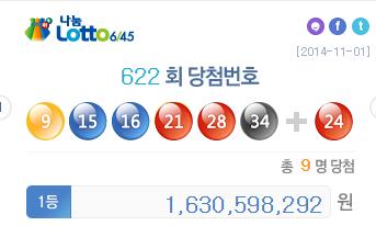 로또 622회 당첨번호 분석해보니…"9명중 8명이 '이 방법'?" [아시아경제 온라인이슈팀] 로또 622회 당첨번호가 발표돼 이목이 집중됐다.1일 실시된 622회 나눔로또 추첨 결과 1등 당첨번호는 9, 15, 16, 21, 28, 34이며 보너스 번호는 24다.이번 로또 622회 당첨번호 1등 당첨자는 총 9명으로, 당첨금은 16억 3059만 8292원이다.로또 622회 1등 당첨번호를 배출한 로또 명당은 인천 중구 신흥동3가 CU(신흥점)(1,수동), 서울 은평구 대조동 대박천하복권방(1,자동), 인천 중구 항동7가 라이프마트(3,자동), 서울 강동구 천호2동 베네시티앞가판(1,자동), 경기 부천시 오정구 고강동 복권천국(1,자동), 경기 안성시 공도읍 진사리 복터진날(1,자동), 부산 사하구 다대동 월드사진관(2,자동), 인천 중구 북성동2가 인천상회(1,자동), 경기 성남시 분당구 서현동 코코블루(2,자동)이다.로또 1등 당첨자 9명 중 8명이 '자동 배정 방식'으로 당첨의 행운을 누려, 네티즌의 눈길을 사로잡았다.로또 622회 당첨번호 소식을 접한 네티즌은 "로또 622회 당첨번호, 자동이 진리네" "로또 622회 당첨번호, 나도 한 번?" "로또 622회 당첨번호, 진짜 부럽다" 등의 반응을 보였다.온라인이슈팀 issue@asiae.co.kr<ⓒ세계를 보는 창 경제를 보는 눈, 아시아경제(www.asiae.co.kr) 무단전재 배포금지>