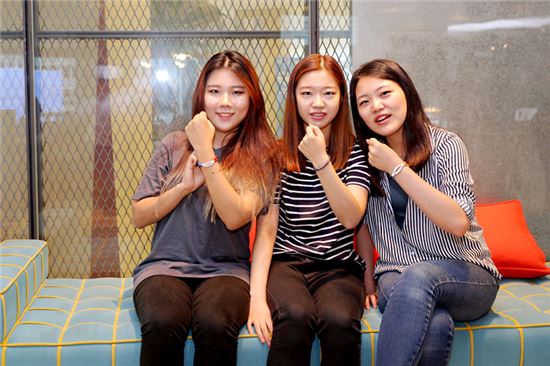 히어링 팔찌를 만든 안채원, 지향은, 이민지(왼쪽부터)씨 [사진=SK이노베이션]