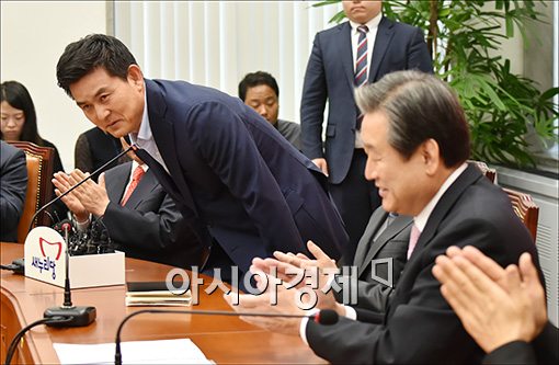 [아시아경제 윤동주 기자] 최고위원 사퇴 철회를 하고 당내 복귀한 김태호 새누리당 의원이 5일 서울 여의도 국회에서 열린 최고중진연석회의에서 발언을 마친 후 고개를 숙이고 있다.윤동주 기자 doso7@asiae.co.kr<ⓒ세계를 보는 창 경제를 보는 눈, 아시아경제(www.asiae.co.kr) 무단전재 배포금지>