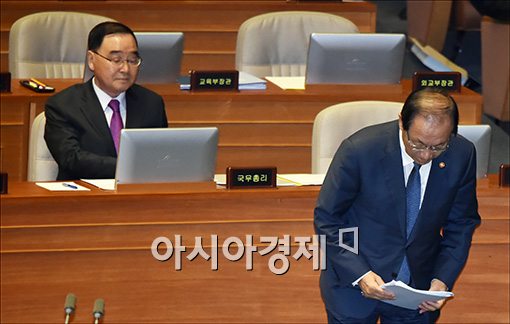[아시아경제 윤동주 기자] 황우여 교육부 장관이 5일 서울 여의도 국회에서 열린 교육 사회 문화분야 대정부질문에 출석해 단상으로 나가기전 인사를 하고 있다.윤동주 기자 doso7@asiae.co.kr<ⓒ세계를 보는 창 경제를 보는 눈, 아시아경제(www.asiae.co.kr) 무단전재 배포금지>