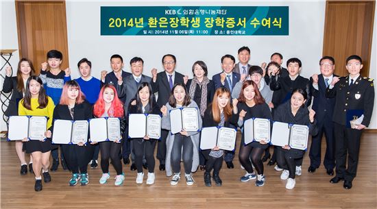 [아시아경제 조은임 기자] 외환은행나눔재단은 저소득층 가정 우수학생 221명을 2014년도 '환은장학생'으로 선발했다고 7일 밝혔다. 그 중 용인대학교 학생 15명에 대한 장학금 수여식을 지난 6일 용인대학교에서 가졌다.환은장학금은 1989년부터 외환은행이 국내 저소득층 자녀의 학업 지원을 위해 운영해오던 장학제도로, 2006년 나눔재단이 승계했다.이번 국내 환은장학금은 고등학생 66명을 포함해 총 221명의 장학생에게 2억6400만원의 장학금이 지원된다. 장학금은 이달 중 외환은행 각 지점에서 추천학교를 방문해 장학금을 수여할 예정이다.나눔재단은 환은장학금 승계 이후 장학금 규모를 지속적으로 확대해 왔다. 장학금 수여 국가도 베트남, 인도네시아, 필리핀 등 외환은행이 진출해 있는 동남아시아 개발도상국으로 확대하여 지원하고 있다. 올해 국외 환은장학금 수여식은 지난 10월에 각 국가별로 진행됐다.조은임 기자 goodnim@asiae.co.kr<ⓒ세계를 보는 창 경제를 보는 눈, 아시아경제(www.asiae.co.kr) 무단전재 배포금지>