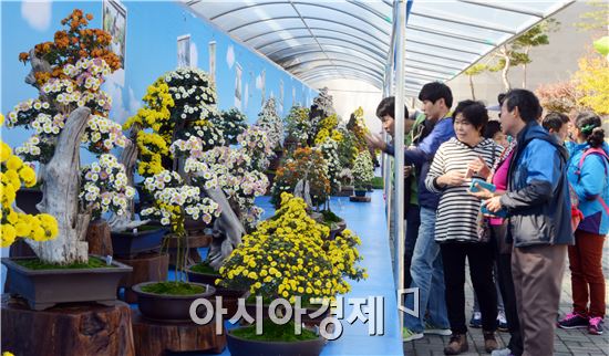 전형적인 가을 날씨가 이어진 가운데 7일 함평국향대전이 열리고 있는 함평엑스포공원에 전국에서 수많은 관광객들이 몰려 들어 그윽한 국화향기를 맡으면서 깊어가는 가을을 만끽했다. <br /> <br /> <br /> ‘국화향기 그윽한 풍요로운 함평천지!’를 주제로 열리는 이번 국향대전은 오는 11월9일까지 관광객 동선 주요 길목에 대형 국화작품과 기획 작품을 배치한 야외 전시, 수준 높은 국화 분재 작품을 관람할 수 있다.