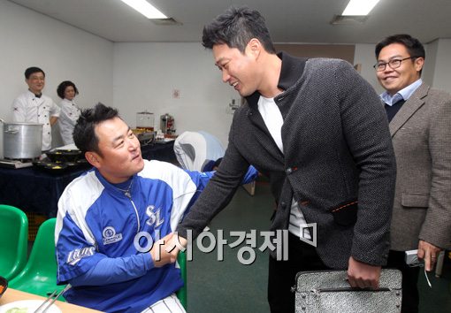 [아시아경제 김현민 기자] 일본프로야구 한신 타이거즈 오승환이 7일 한국시리즈 3차전이 열리는 서울 목동구장을 찾아 친정팀 삼성 진갑용과 인사하고 있다. 사진=삼성 라이온즈 제공김현민 기자 kimhyun81@asiae.co.kr<ⓒ세계를 보는 창 경제를 보는 눈, 아시아경제(www.asiae.co.kr) 무단전재 배포금지>