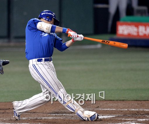 [아시아경제 김현민 기자] 프로야구 삼성과 넥센의 한국시리즈 3차전이 7일 서울 목동야구장에서 열렸다. 9회초 2사 1루에서 삼성 박한이가 넥센 한현희를 상대로 역전 투런 홈런을 치고 있다.