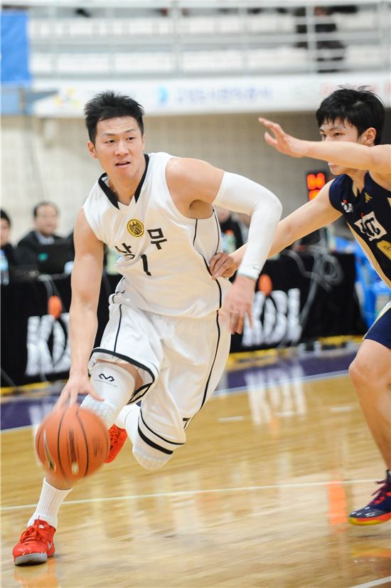 상무의 이정현이 10일 고양실내보조체육관에서 열린 2014-2015 KBL D리그 전주 KCC와 개막경기에서 상대 진영으로 돌파하고 있다.[사진=KBL 제공]