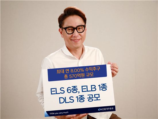 KDB대우증권이 11일부터 주가연계증권(ELS) 6종, 주가연계파생결합사채(ELB) 1종, 파생결합증권(DLS) 1종 등 8종을 총 570억원 규모로 판매한다.
