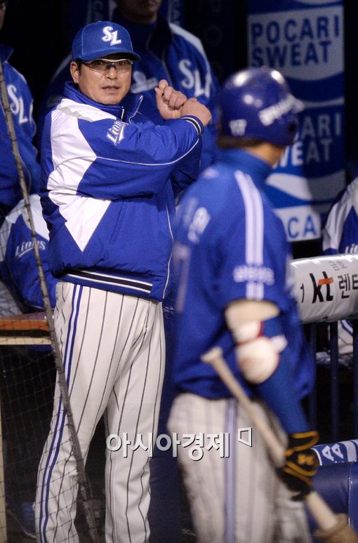 [아시아경제 김현민 기자] 프로야구 삼성 라이온즈와 넥센 히어로즈의 한국시리즈 6차전이 11일 서울 잠실구장에서 열렸다. 3회초 1사 만루에서 삼성 류중일 감독이 타석에 들어가는 채태인에게 작전을 지시하고 있다. 김현민 기자 kimhyun81@asiae.co.kr<ⓒ세계를 보는 창 경제를 보는 눈, 아시아경제(www.asiae.co.kr) 무단전재 배포금지>