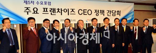 [아시아경제 최우창 기자] 12일 서울 태평로1가 프레스센터에서 열린 '주요 프랜차이즈 CEO 간담회'에 참석한 이기권 고용노동부 장관을 비롯한 참석자들이 회의에 앞서 기념사진 촬영을 하고 있다.이날 이 장관은 기초고용질서 확립과 시간선택제 일자리 활성화에 대해 강조했다.최우창 기자 smicer@asiae.co.kr<ⓒ세계를 보는 창 경제를 보는 눈, 아시아경제(www.asiae.co.kr) 무단전재 배포금지>