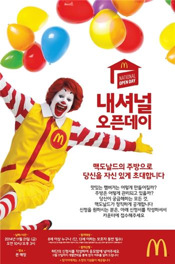 맥도날드가 내셔널 오픈데이를 개최한다.