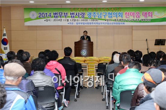 최영호 광주시 남구청장은 12일 오후2시 구청 대회의실에서 법무부범죄예방위원 남구지구협의회 위원 및 선도장학금 대상자 등 100여명이 참석한 가운데 선도장학금 전달식을 갖고 축하인사를 전했다. 사진제공=광주시 남구<br />
