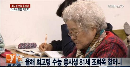최고령 수능 응시생 조희옥 씨[사진출처=연합뉴스TV 방송 캡처]