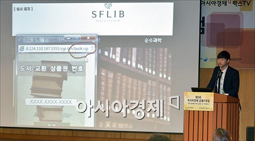 [아시아경제 윤동주 기자] 아시아경제신문과 금융보안포럼 공동주최로 14일 서울 중구 은행회관에서 열린 '제5회 금융IT포럼'에서 순천향대학교 정보보호학과 SecurityFirst 학생들이 쉘쇼크를 이용한 최신 해킹공격 시연을 해보이고 있다.윤동주 기자 doso7@asiae.co.kr<ⓒ세계를 보는 창 경제를 보는 눈, 아시아경제(www.asiae.co.kr) 무단전재 배포금지>