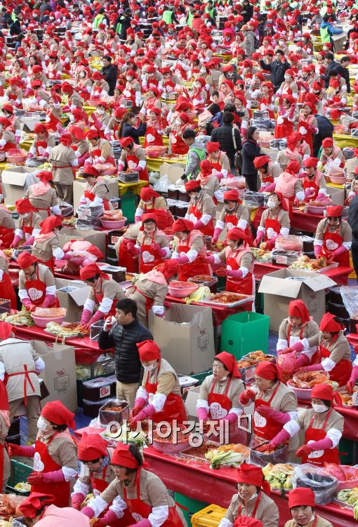[아시아경제 최우창 기자]15일 오후 서울광장에서 한국야쿠르트 주최로 열린 '2014 사랑의 김장나누기' 행사에서 야쿠르트 아줌마와 시민봉사단들이 김장을 하고 있다.최우창 기자 smicer@asiae.co.kr<ⓒ세계를 보는 창 경제를 보는 눈, 아시아경제(www.asiae.co.kr) 무단전재 배포금지>